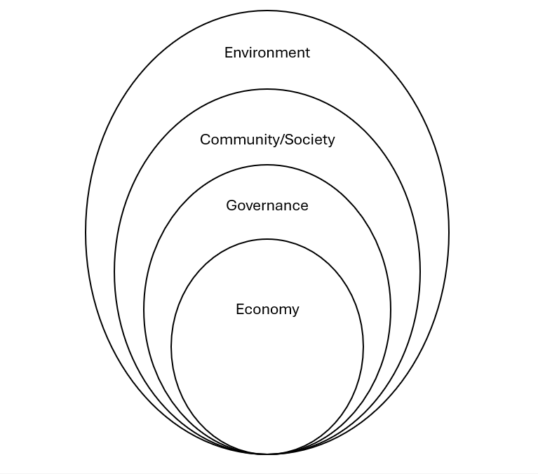 No longer are we, misguidedly, giving the economy an equal weighting of importance. No, without the economy governance, relationships and environment can continue.